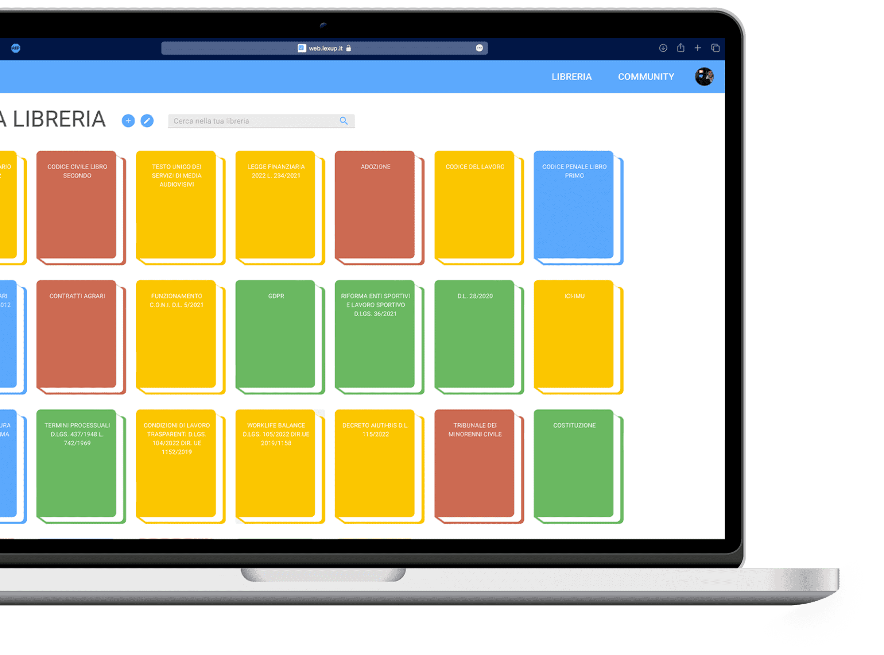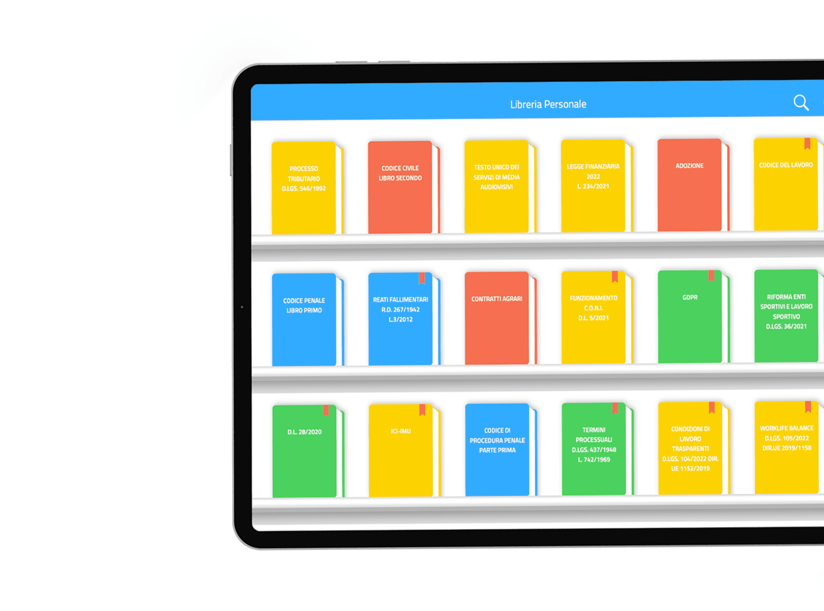 Nella tua borsa avrai la normativa italiana sempre aggiornata, in una libreria digitale semplice da organizzare.